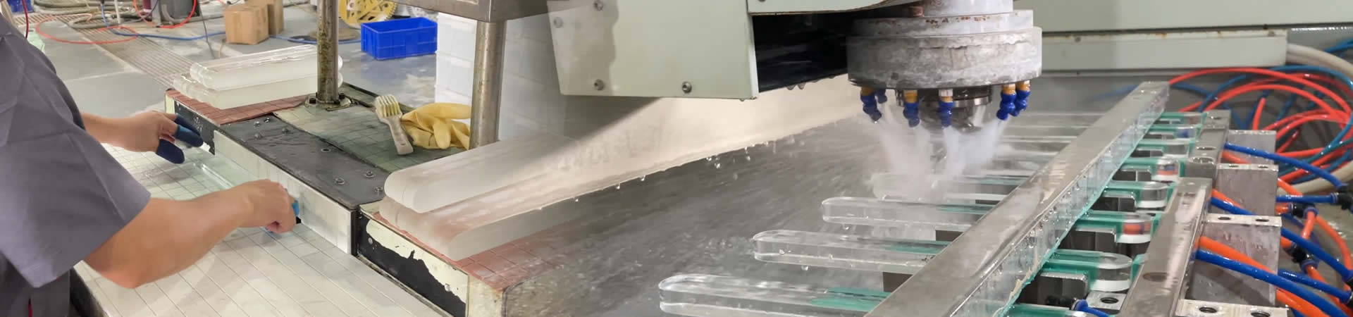 Retificar cuidadosamente ambos os lados do vidro para garantir uma espessura uniforme, eliminar quaisquer irregularidades, melhorar a planura e o paralelismo do vidro e remover rebarbas.